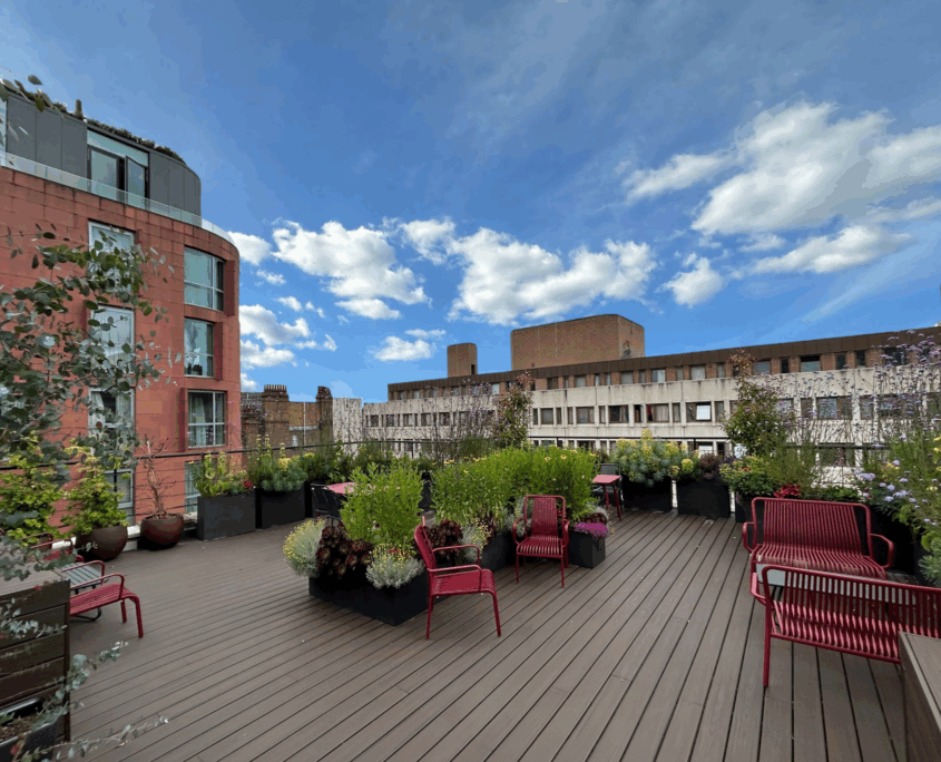 The Stableyard Offices are a delightful collection of modern offices in a historic building. Amenities abund throughout from the lounge and atrium downstairs all the way through to the roof terrace upstairs without forgetting the towel serviced showers, gym, meeting rooms, bicycle store, lavish reception area and living room and the unique Grade II listed atrium.